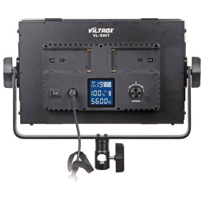 Set of three lights Viltrox VL-S50T. Intense 50W Bi-color LED light with adjustable colour temperature (in the range 3300-5600K) and intensity (20-100%; max. 4300 lm, 1900 lx/1 m). It offers the possibility of wireless remote control (2.4GHz, driver included) and the possibility of power supply using batteries (NP-F960 / F970, battery not included) or external power supply (included). Parameter settings are facilitated by the easy-to-read LCD display. Dimensions 317x249x48 mm, weight 1400 g.