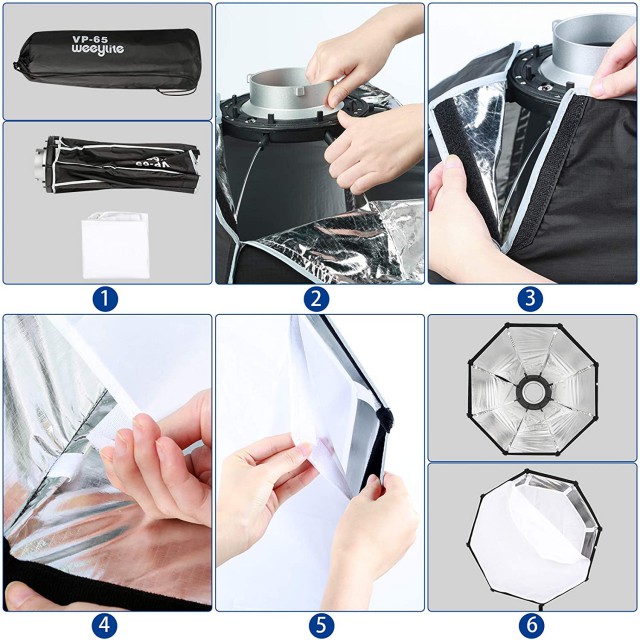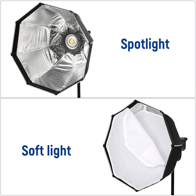 Softbox for Viltrox Weeylite Ninja 400 LED spotlight (and others with Bowens bayonet e.g. Sokani x60/Godox SL-60W VL150/Aputure 1202). Diameter 65 cm, depth 41 cm. Package includes carrying bag.