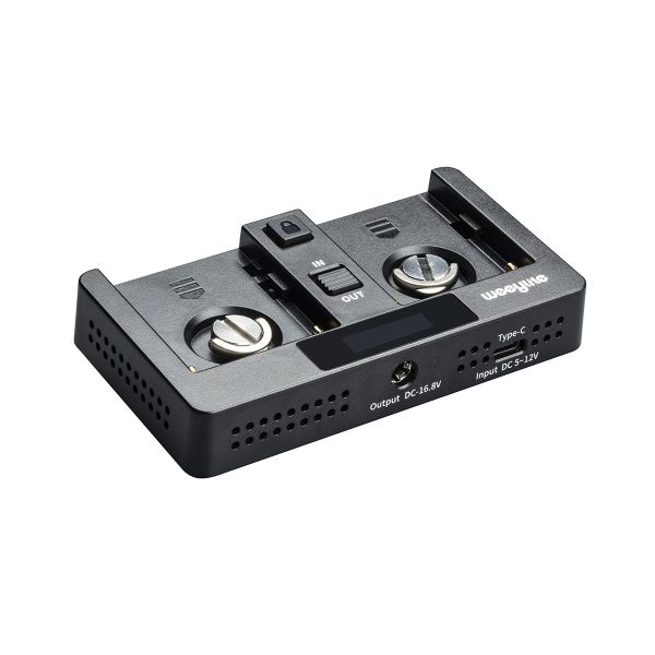 However, the WB2 adapter offers even more useful features. In fact, each NP-F battery can be individually set up in the Weeylite WB2 battery adapter and then used to power other devices. This battery adapter is also great as a charger. Simply flip the switch on the adapter to the IN position and connect the USB-C cable to the adapter and power supply (max. DC 12 volts / 2 amps) (USB-C cable and power supply not included).