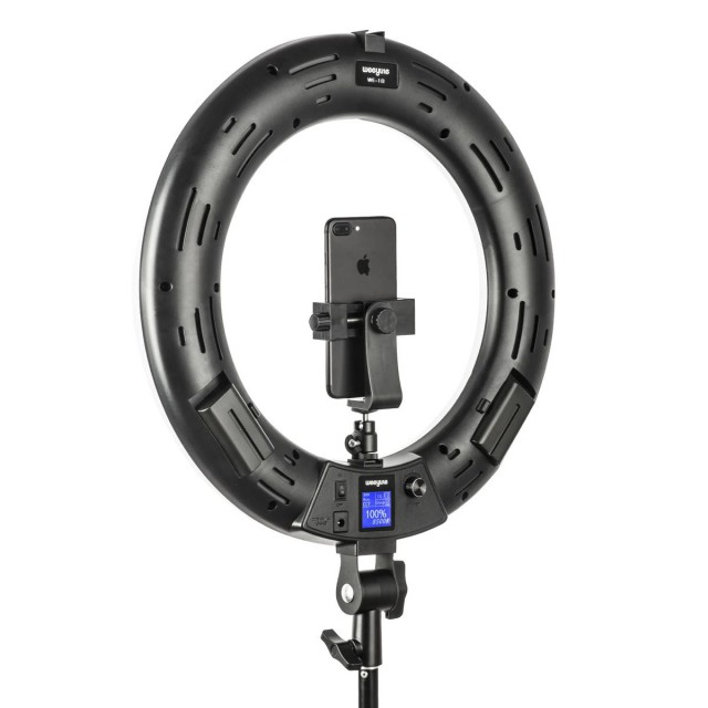 The Weeylite WE-10 professional effect light in an 18" RGB LED ring design offers 17 lighting effects and remote control via mobile app!