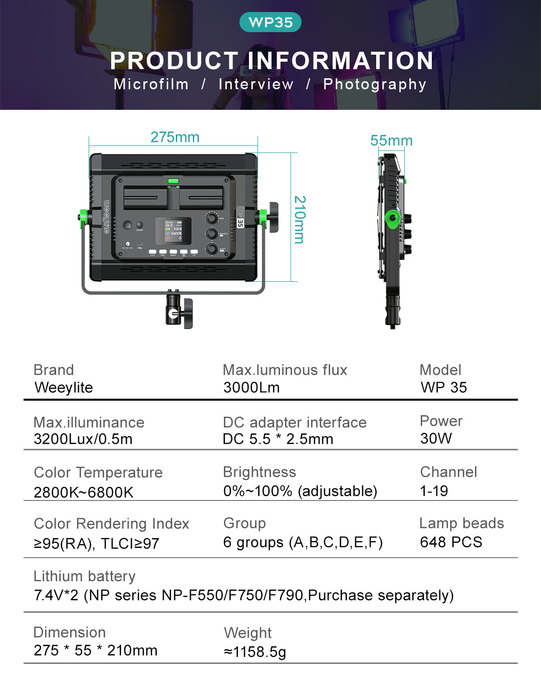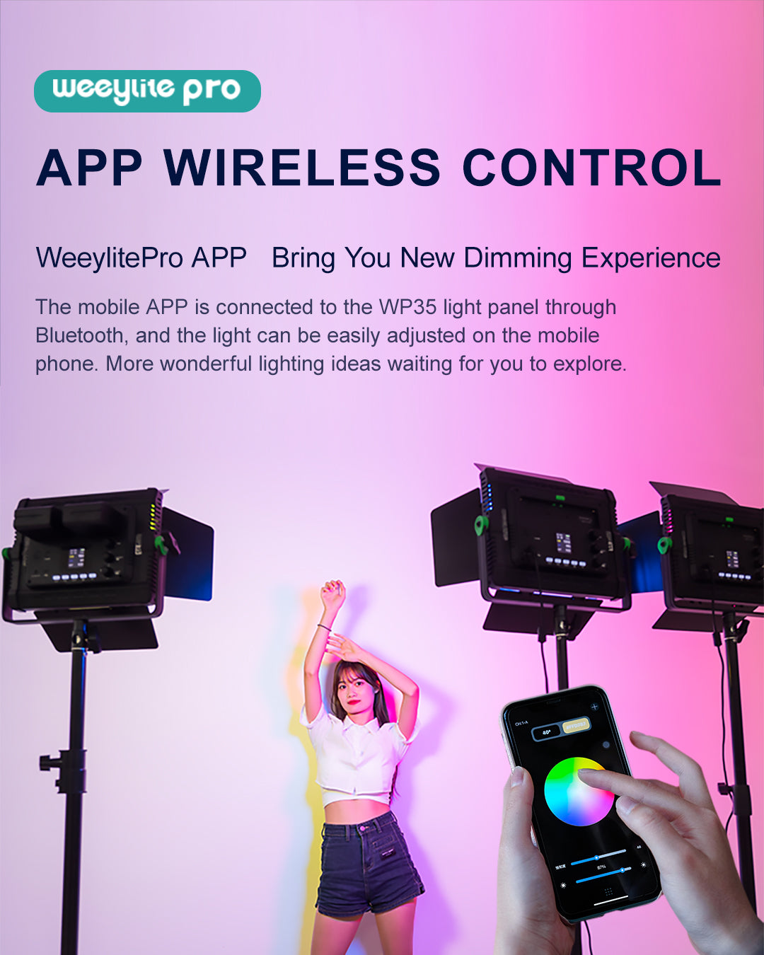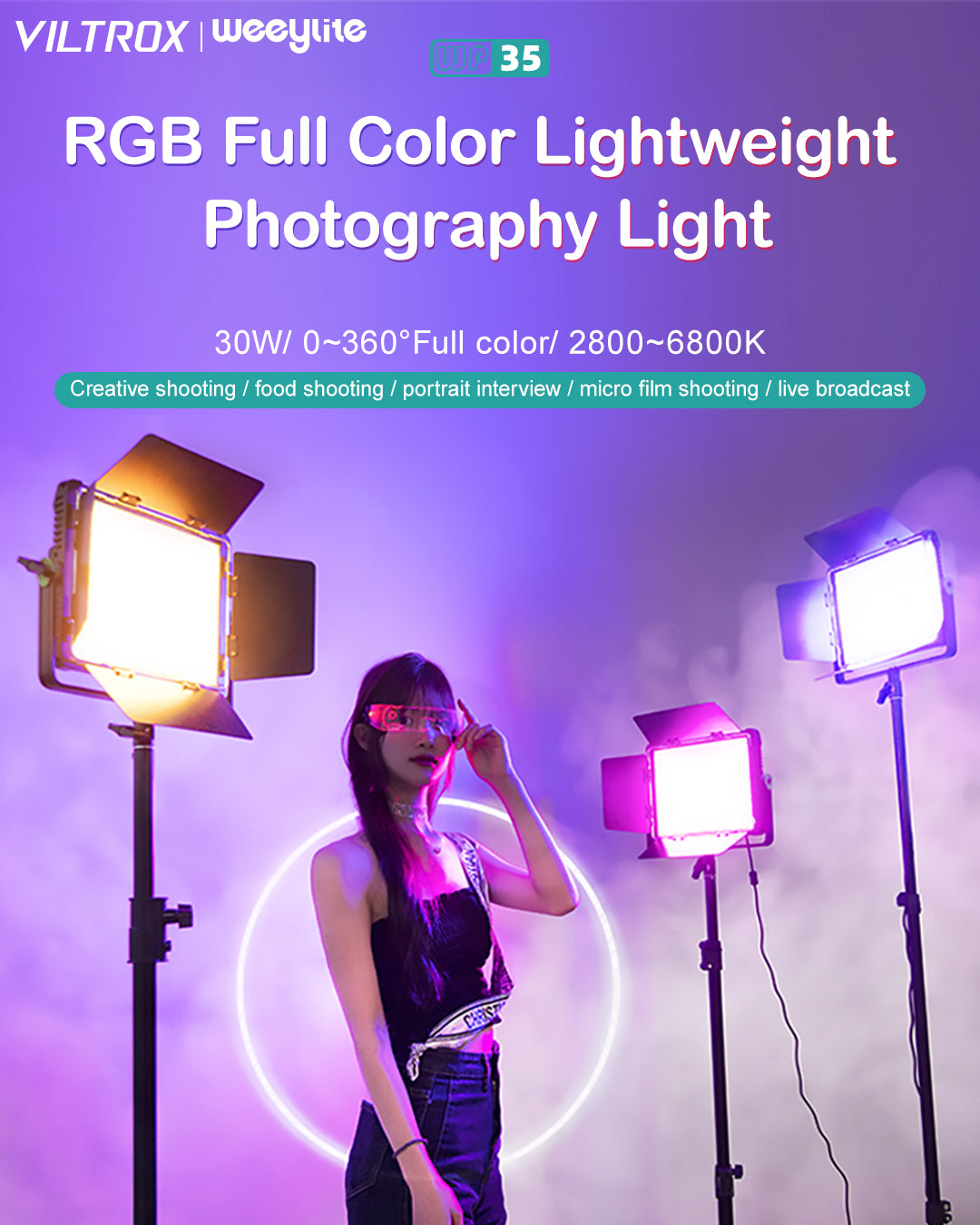 WP35 is a professional photography fill light with selected high-display index lamp beads and preferred RGB,low power consumption,stable color temperature,and the ratio of color temperature and brightness can be adjusted arbitrarily.It is easy to carry and suitable for shooting in various scenes,and can meet your shooting needs of more scenes.