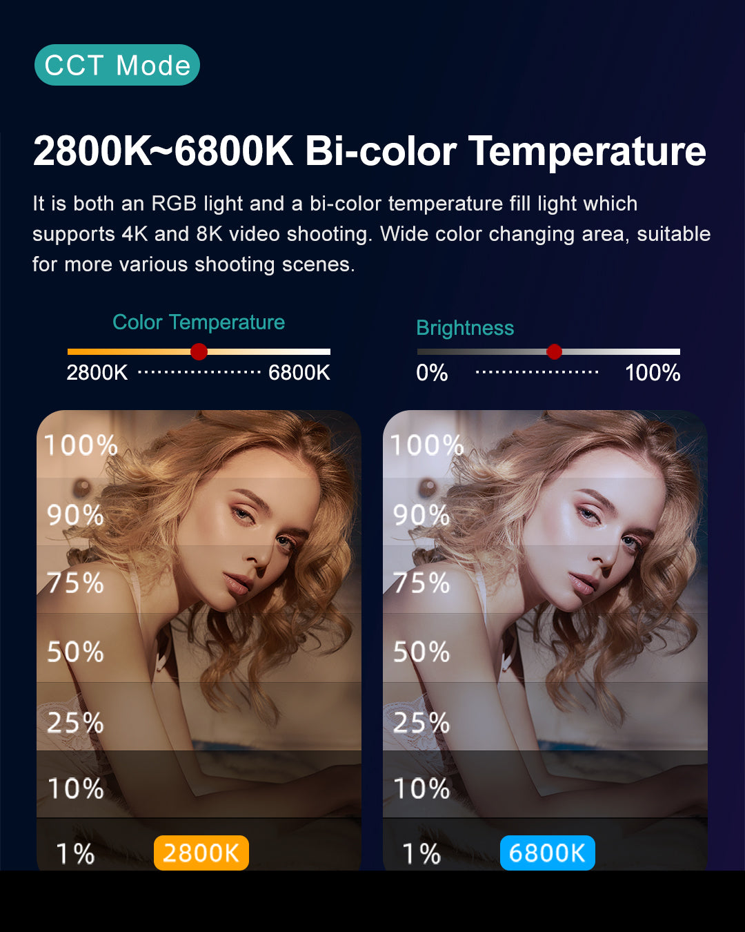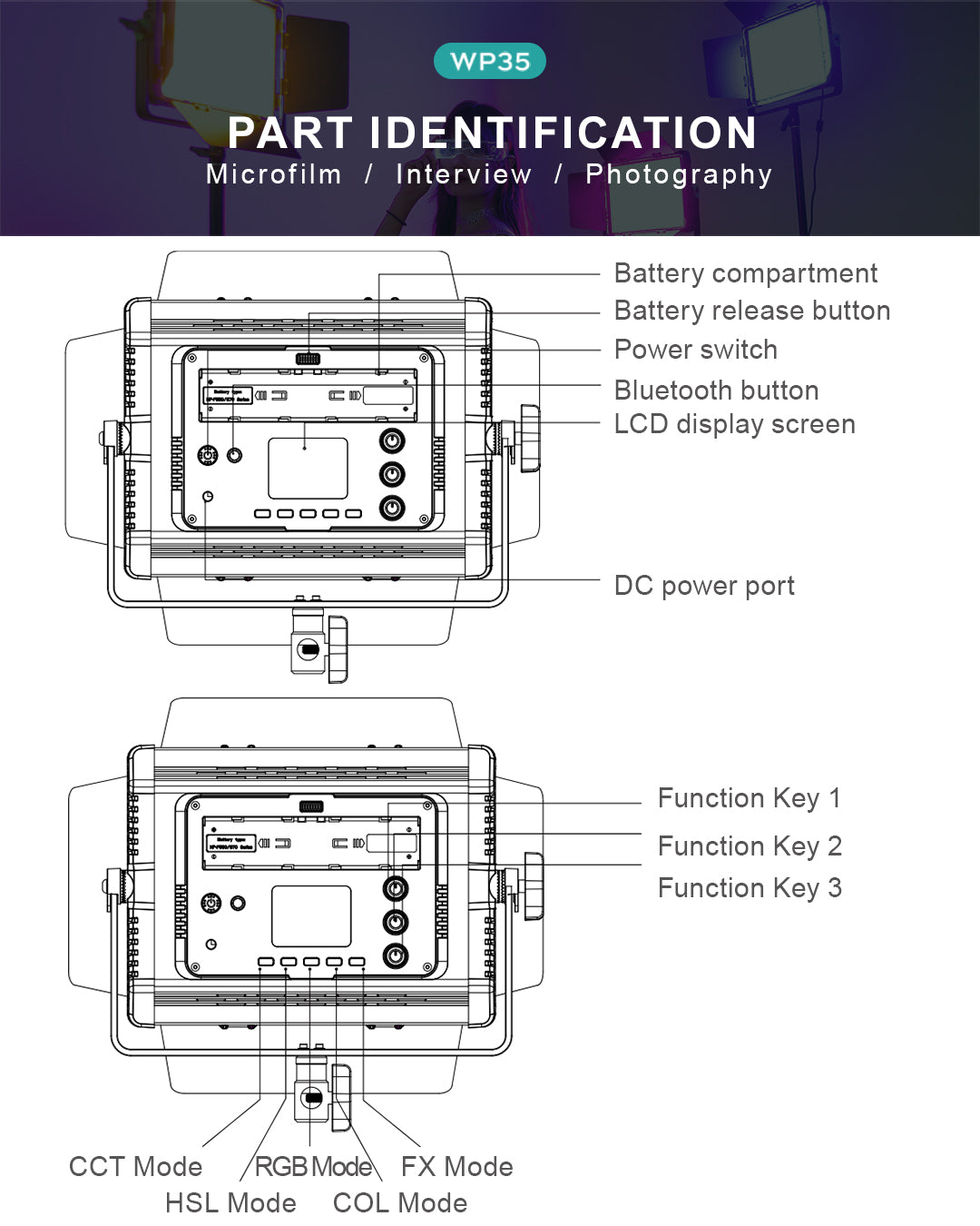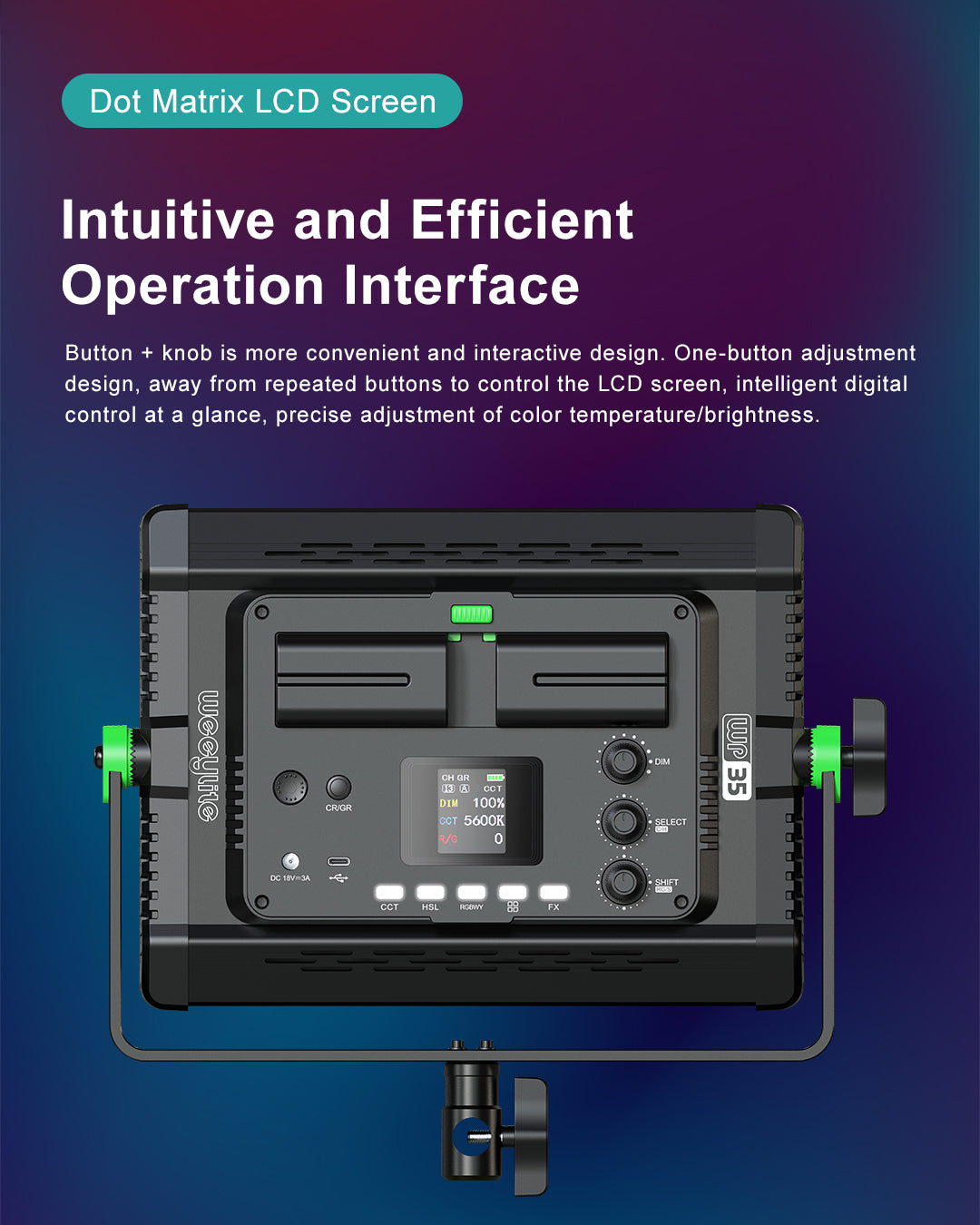WP35 is a professional photography fill light with selected high-display index lamp beads and preferred RGB,low power consumption,stable color temperature,and the ratio of color temperature and brightness can be adjusted arbitrarily.It is easy to carry and suitable for shooting in various scenes,and can meet your shooting needs of more scenes.