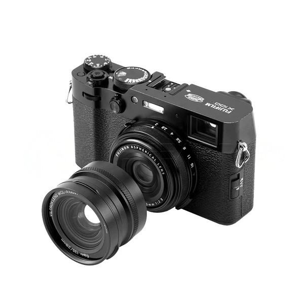 The WCL-X100VI is a wide-angle conversion lens designed for Fujifilm X100 cameras. It features a 4-group, 5-element optical design and attaches to the front of X100 series lenses.