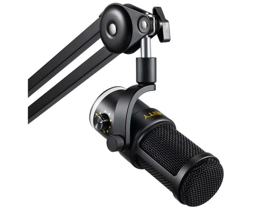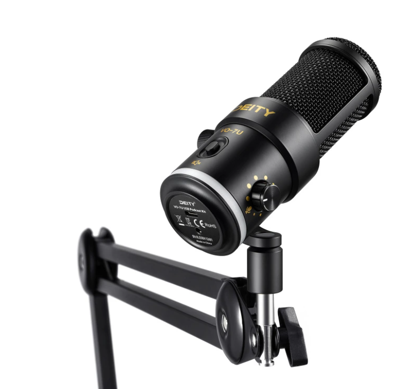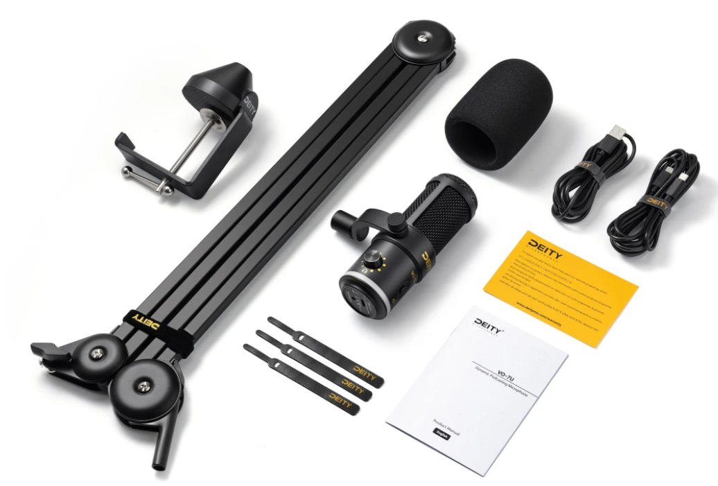 The Deity VO-7U USB Podcast Microphone + Boom (Black) is a professional dynamic USB microphone kit for podcasters and streamers, offering broad device compatibility, clean noise-focused audio, built-in controls, and customizable RGB lighting.