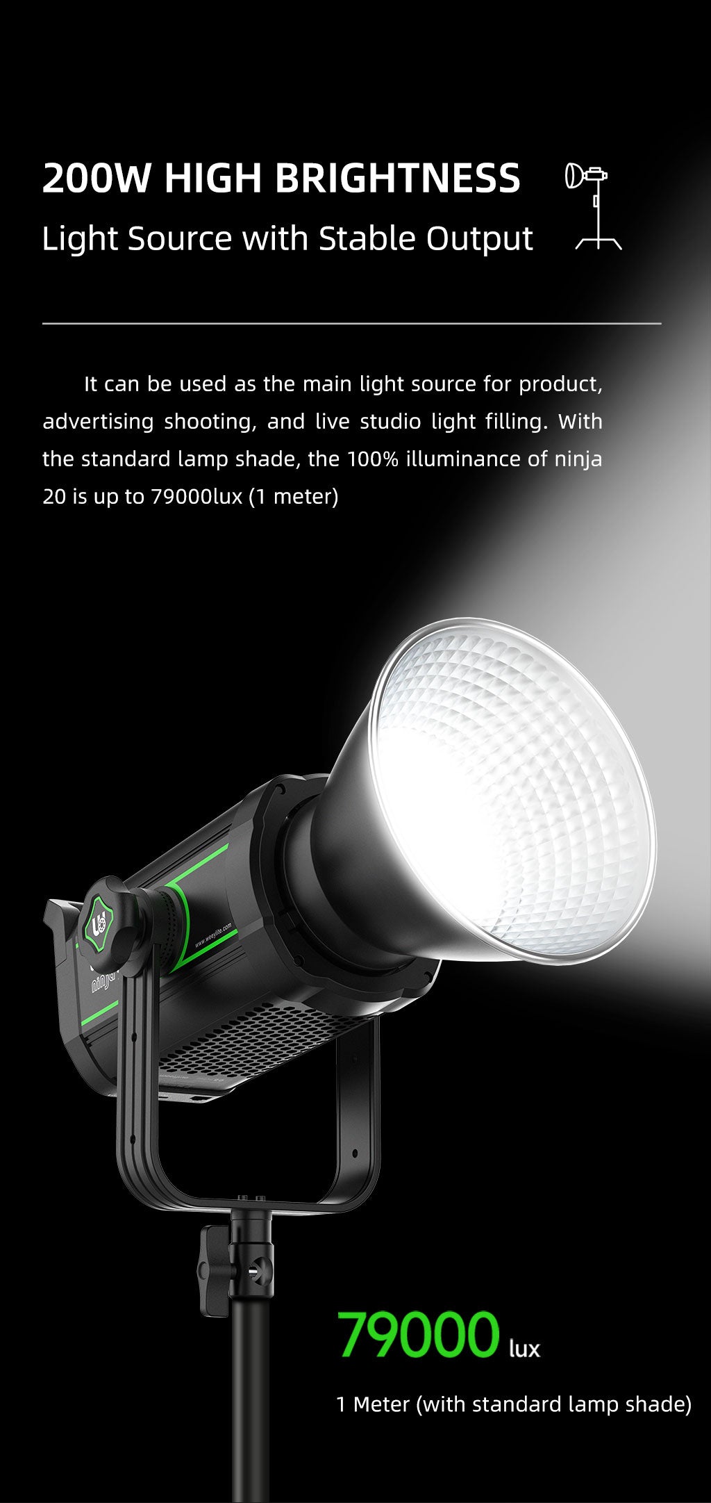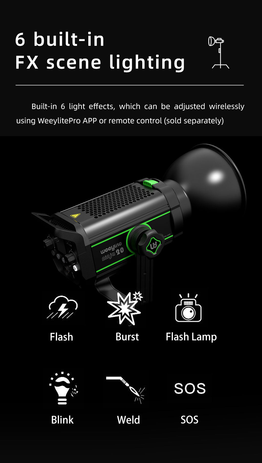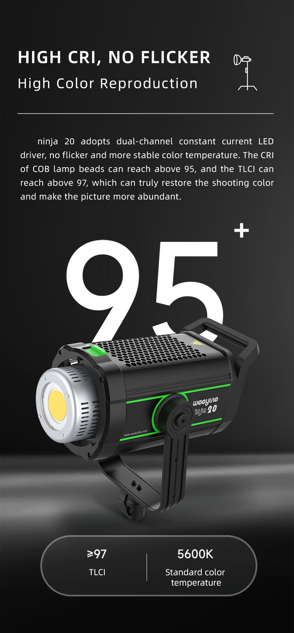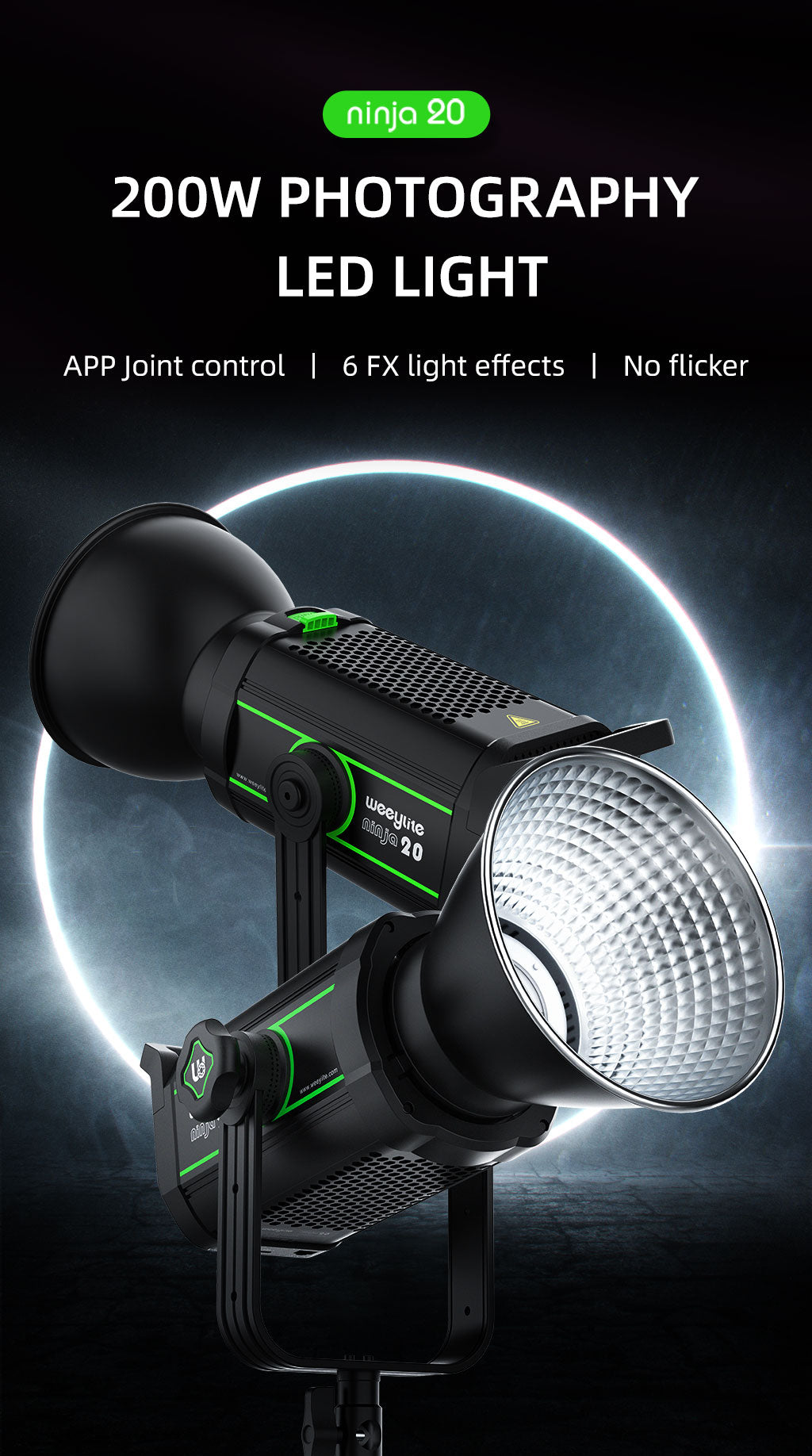 Weeylite Ninja 20 200W 5600K APP Joint Control 6 FX Light Effects TLCI≥97, RA≥95 Professional COB LED Light