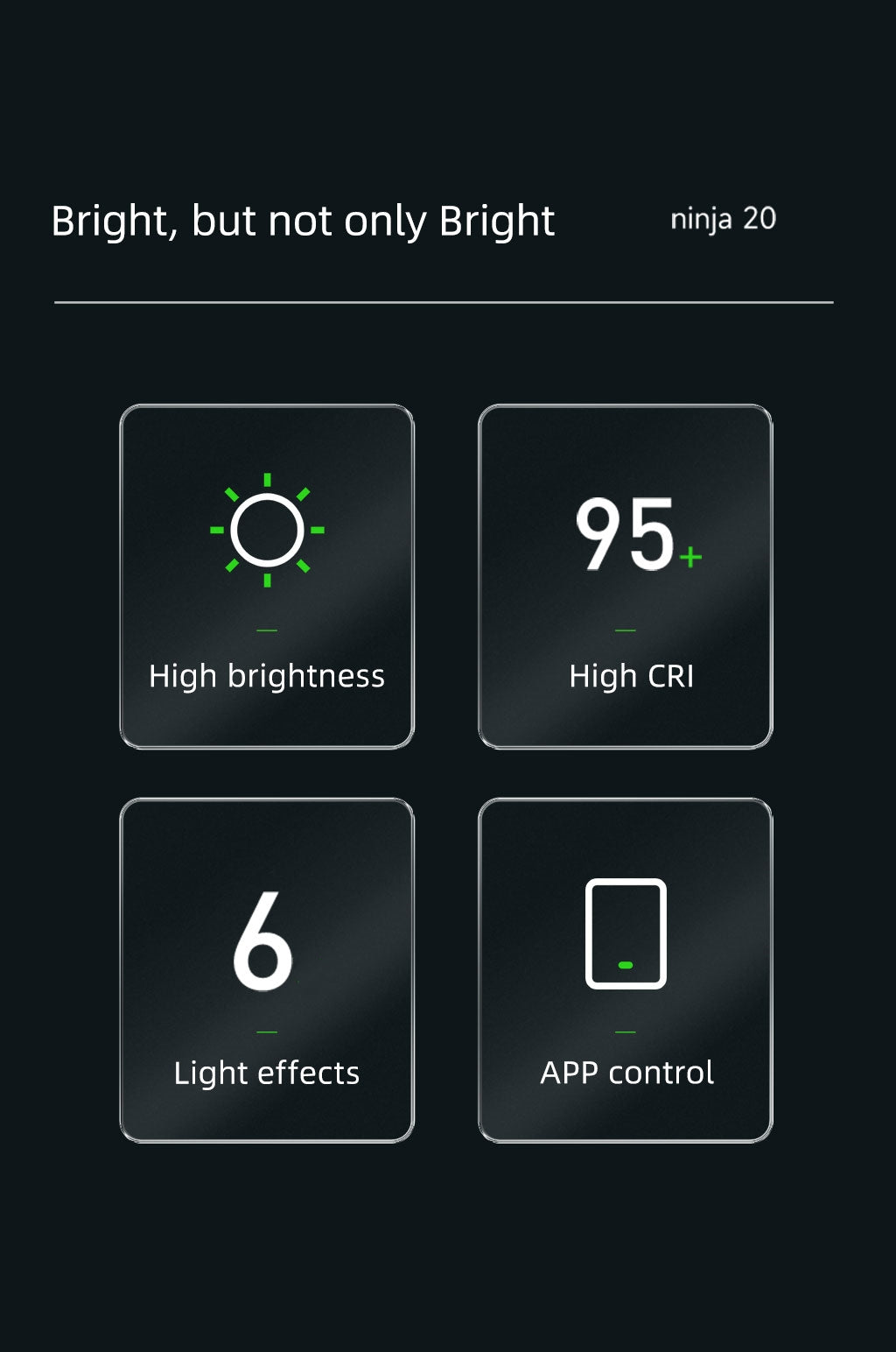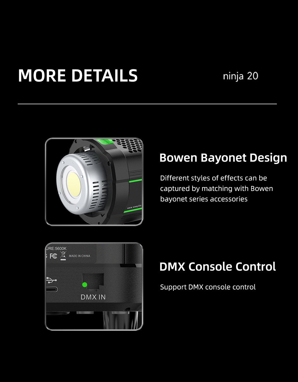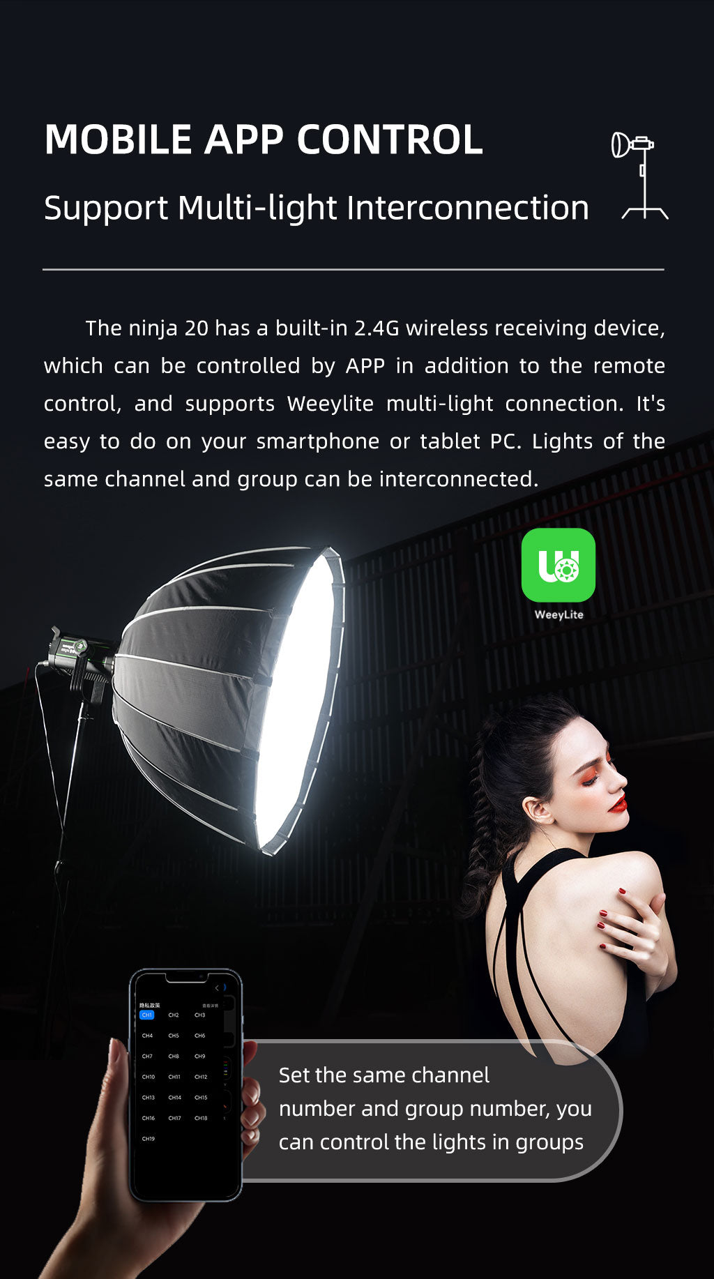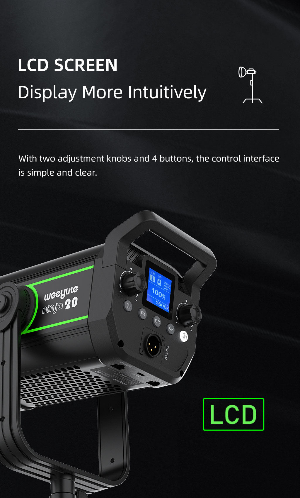 Weeylite Ninja 20 200W 5600K APP Joint Control 6 FX Light Effects TLCI≥97, RA≥95 Professional COB LED Light