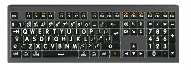 The Logickeyboard XL Print ALBA Mac keyboard is a high-visibility, plug-and-play