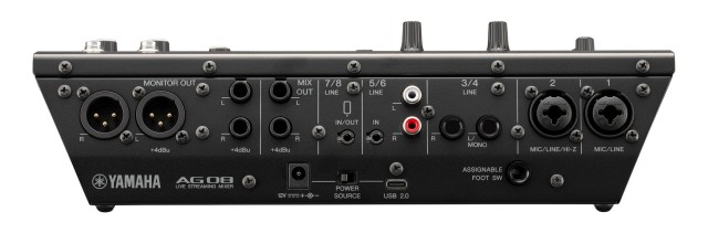 The AG08 is an 8-channel live streaming mixer featuring two phantom power inputs for condenser mics, an integrated USB audio interface, voice changer and sampler. By integrating more flexible I/O and USB routing options, expanded foot switch functionality, as well as additional DSP effects and improved internal circuitry for classleading sound, the AG08 is able to support an impressive depth of live streaming applications, as well as offline audio content creation. From single-user performances, to multiple personnel applications even on the scale of a full-blown variety show, the real-world, real-time functionality of the AG08 will leave your audience wanting more.