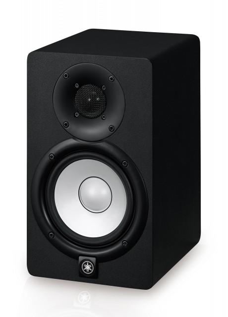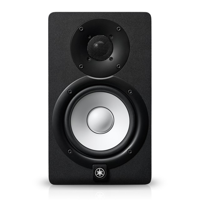 The black HS5 Powered Studio Monitor from Yamaha is a bi-amplified monitor that is designed for accurate sound reproduction. It is capable of up to 70W of total output and features a 5-inch woofer and a 1-inch tweeter with waveguide that can produce frequencies up to 30kHz. The HS5 has both an XLR and 1/4" TRS input that accept either balanced or unbalanced signals for integration into a variety of studio setups.