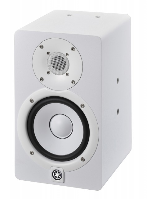 The white HS5I 2-Way Bi-Amped Powered Studio Monitor from Yamaha features 70W of output power, a 5" cone woofer, a 1" dome tweeter, response-tailoring controls to match the speaker output to a wide range of acoustic spaces, and a standard XLR connector along with a phone jack for direct connection of electronic musical instruments and other sources. The powered studio monitor can be used to reproduce audio in various environments such as recording studios, home studios, cafes, restaurants, and more.