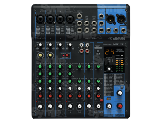 The MG10XU from Yamaha is a compact ten-input mixer with built-in effects for performances, lectures, recordings, and similar applications. The mixer features four mic/line combo inputs with D-PRE mic preamps as well as six 1/4" line inputs with stereo level controls. It also features USB connectivity…