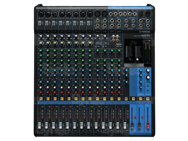 The MG16XU from Yamaha is a compact mixer capable of sixteen simultaneous inputs that is ideal for performances, recordings lectures and more. The mixer features eight mono mic/line combo input channels, two stereo line input channels that can also be used as mono mic or line inputs (XLR and stereo 1/4" inputs), and two stereo line inputs with 1/4" and RCA jacks. It also features USB connectivity and is capable of providing two channels in and two channels out to your computer at up to 24-bit / 192kHz, ideal for recording live performances, demos and more.