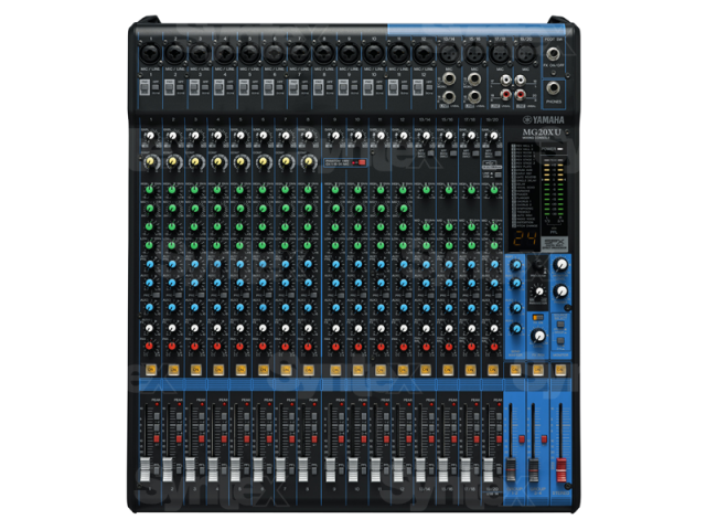 The Yamaha MG20XU is a compact mixer capable of 20 simultaneous inputs and is ideal for live performances, recordings, lectures, and more. The mixer features 12 mono mic/line combo input channels, and 4 stereo line input channels that can also be used as mono mic or line inputs. It also features USB connectivity and is capable of providing 2 channels in and 2 channels out to your computer at up to 24-bit / 192 kHz, ideal for recording live performances, demos, and more.