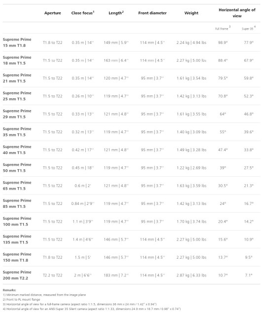 Consistency is one of the key elements offered by the ZEISS Supreme Prime lenses: that means consistent coverage, color rendering, aperture, size, weight and ergonomics. All the lenses across the family cover full frame and even bigger sensors with an image circle of 46.2 mm. The Supreme Prime lenses are color matched across the full range and most feature a fast T-stop of T1.5. Interchangeable Mount System ensures compatibility witj PL, LPL, and EF mounts (supplied with PL and metric marking as standard).