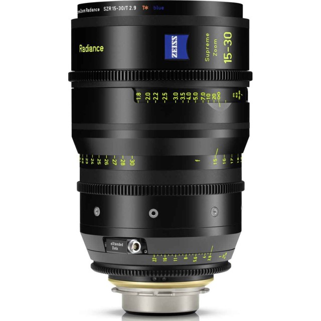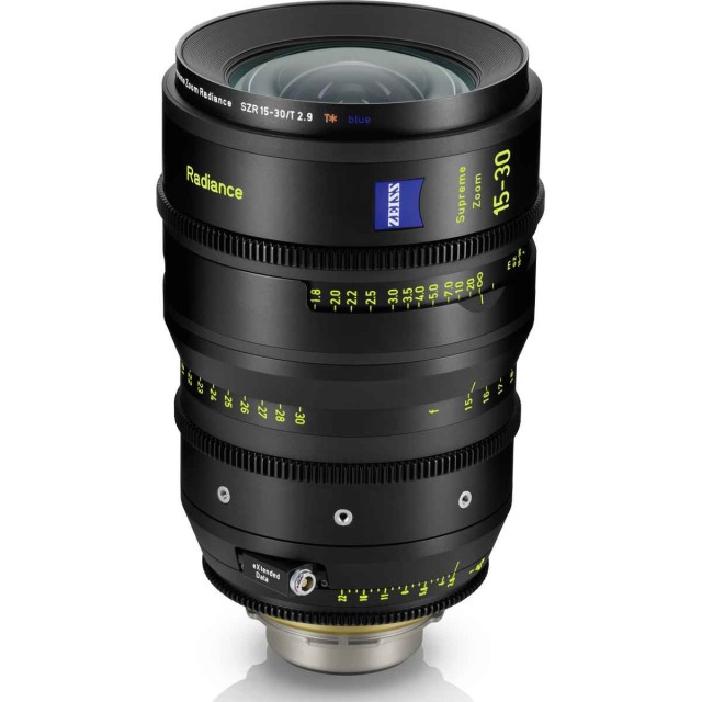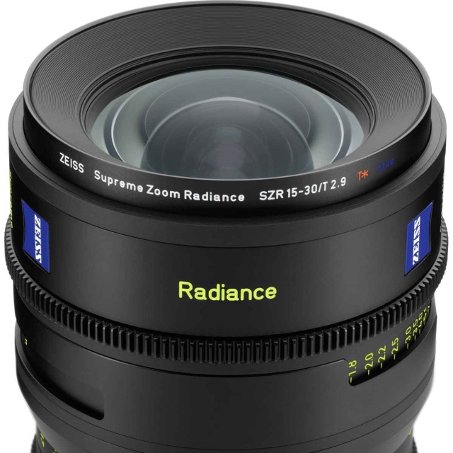ZEISS Supreme Zoom Radiance lenses are a unique line of film zoom lenses and the only zoom lenses that match the image rendition of the Supreme Prime Radiance series. The three newly designed T/2.9 top film zooms - 15-30mm, 28-80mm and 70-200mm - feature the same blue "T*" optics finish as the popular Supreme Prime Radiance models. This allows cinematographers to create their signature look with beautiful, consistent and controlled flare, warmer color reproduction and a pleasing cinematic image character including beautiful bokeh. Radiance zooms offer a unique image rendition in film zooms, and can be combined perfectly with Zeiss Radiance Prime fixed lenses and vintage lenses. State-of-the-art ergonomics and full lens data support are standard. Orders from 11/2024, first deliveries from 4/2025.