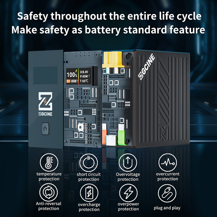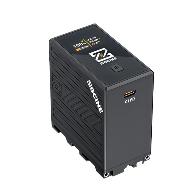 The ZGCINE BT-NPF970 L Series Battery delivers high-performance power in a durable, compact form with a 9600mAh (7.2V/69.12Wh) lithium-ion capacity, supporting PD fast charging and discharging up to 36W via USB-C. Equipped with a D-TAP output (8.4V/3A), NPF output (7.2V/10A), and NPF input (8.4V/6A), it powers a wide range of cine and broadcast equipment. The built-in OLED screen provides real-time monitoring of battery percentage, voltage (U), power (P), temperature (T), and C1 interface status, with a single button to toggle the display (inactive during charging). Engineered for safety throughout its lifecycle, it includes temperature, short circuit, overvoltage, overcurrent, anti-reversal, overcharge, and overpower protection. Constructed from PC+ABS, it operates reliably from -10°C to 45°C and features plug-and-play functionality for seamless integration into professional workflows.