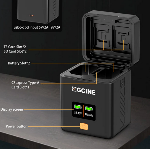 The ZGCINE Charging Case for Fujifilm NP-W235 Battery is a compact, efficient solution for charging your NP-W235 batteries, featuring USB-C PD fast charging, multiple card slots, and a clear OLED display for easy monitoring.
