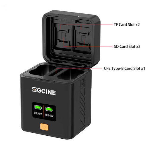 The ZGCINE Charging Case for Nikon EN-EL15c Battery is a versatile charging solution, featuring USB-C PD input/output, multiple card slots, and a 0.96-inch OLED screen for real-time monitoring.
