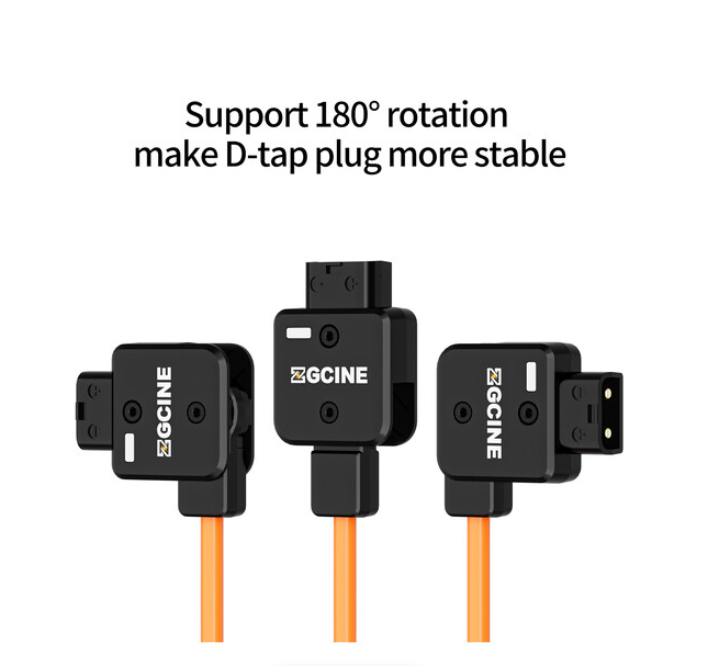 The ZGCINE DT-LMS is a 60cm nylon-braided D-Tap to Lemo 2-pin male power cable designed for select RED, ARRI, and Sony cameras, featuring a 180° rotatable D-Tap male connector with anti-reverse insertion indicator light, supporting up to 150W (10A) at 14.8V input/output for reliable rig power delivery