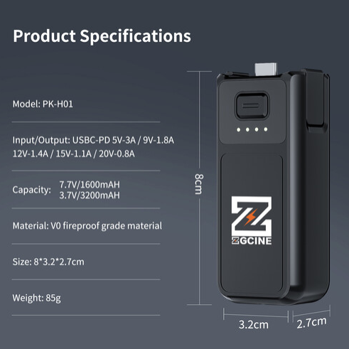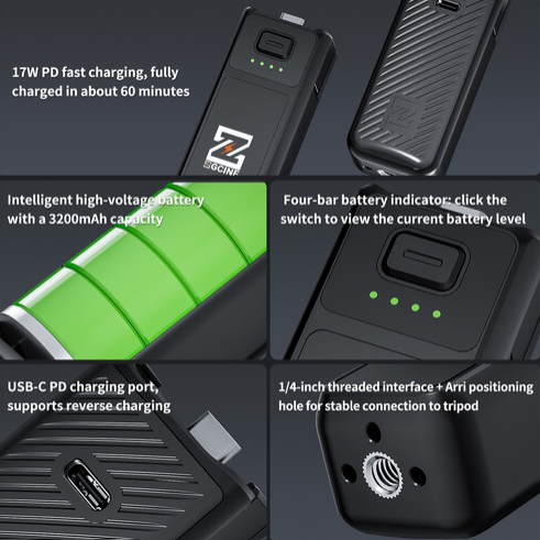 The ZGCINE PK-H01 Battery Grip is a high-performance accessory for DJI Osmo Pocket 3 cameras, offering an intelligent high-voltage battery with a 3200mAh capacity for worry-free shooting. Its compact and lightweight design makes it easy to carry, while the 17W PD fast charging allows the battery grip to be fully charged in approximately 60 minutes. The grip supports low-temperature charging with minimal electrical noise, reverse charging via USB-C PD, and features a four-bar battery indicator for real-time monitoring. With a 1/4-inch threaded interface and Arri positioning hole, it ensures a stable connection to tripods. Additionally, it allows direct data transmission to computers to access memory card files conveniently.