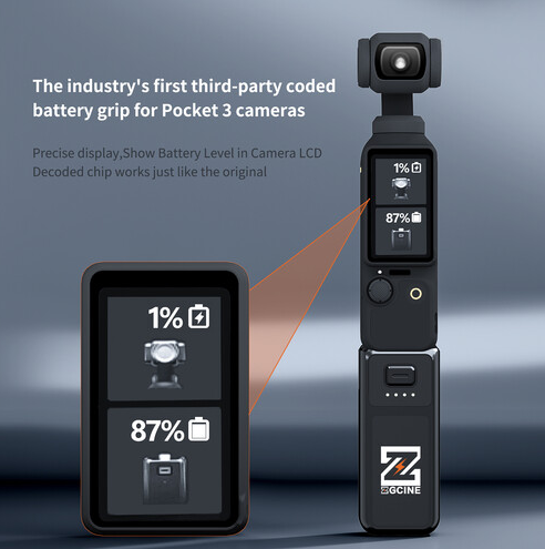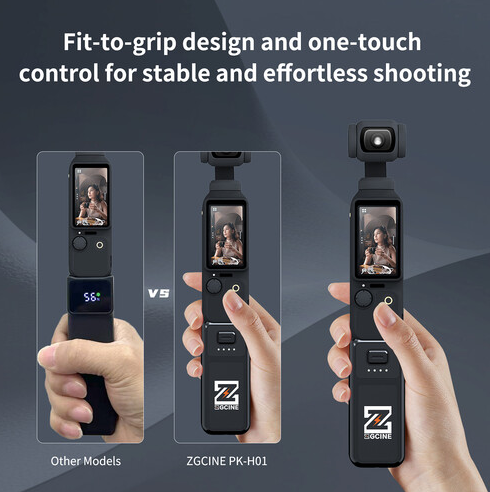 The ZGCINE PK-H01 Battery Grip is the first third-party coded battery grip designed for the DJI Osmo Pocket 3. Compact and portable, it provides extended battery life, fast charging, and convenient data transmission directly to your computer.