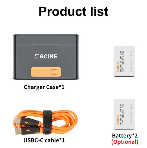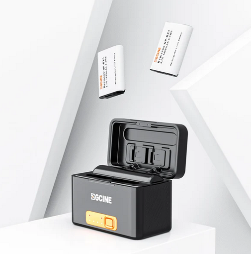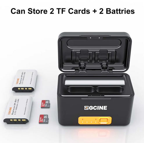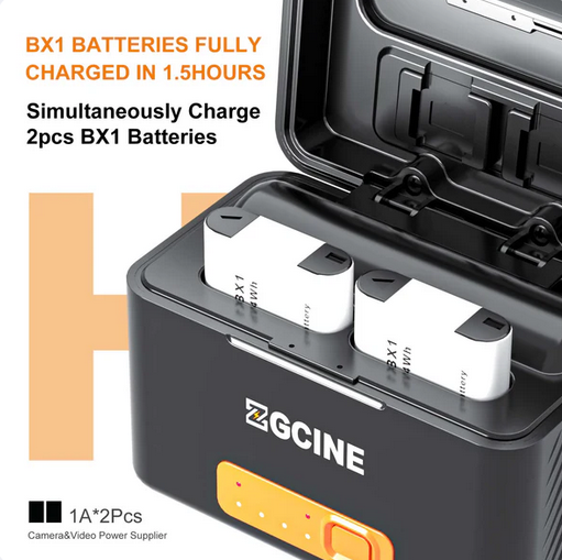 The ZGCINE SONY BX1 Battery Charging Case (PS-BX1 Kit2) comes with two NP-BX1 batteries, offering a portable solution for charging your Sony devices with fast charging and efficient storage.