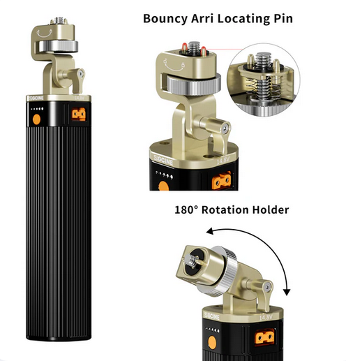 The ZGCINE ZG-H90Pro Battery Grip is designed to provide reliable and efficient power for cameras and accessories. Featuring a bouncy Arri locating pin and a 180° rotation holder, it ensures secure mounting and flexible positioning. The grip supports USB-C PD input/output for fast charging and includes a D-Tap 14.8V output for additional power options. Its universal light stand connector enhances compatibility with various setups. A charging indicator light provides real-time power status, making it a must-have accessory for professional videographers.