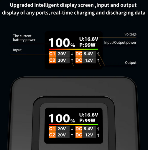 1.1-inch Smart Display – Real-time monitoring of voltage, power, and temperature