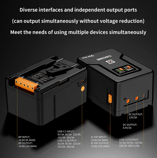 The ZGCINE ZG-V99Pro V-Mount Battery is a powerful, upgraded V-mount battery with PD 100W fast charging, a smart 1.1-inch display for real-time monitoring, and compatibility with various devices, making it ideal for photographers and videographers.