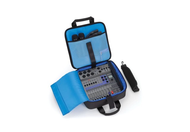 The CBL-8 is semi-hard carrying bag made with EVA (Ethylene-Vinyl Acetate) material. It carries a LiveTrak™ L-8 as well as their accessories such as power adapter, cables and SD cards, and you can take them comfortably. It has stretch-bands to fix the unit securely and pads protect from damage and shock. And also it comes with a shoulder strap with pads to reduce load of weight.