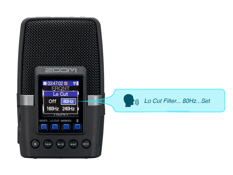The H2essential has advanced features such as a low cut filter, pre-record, auto record, and playback speed adjustment.