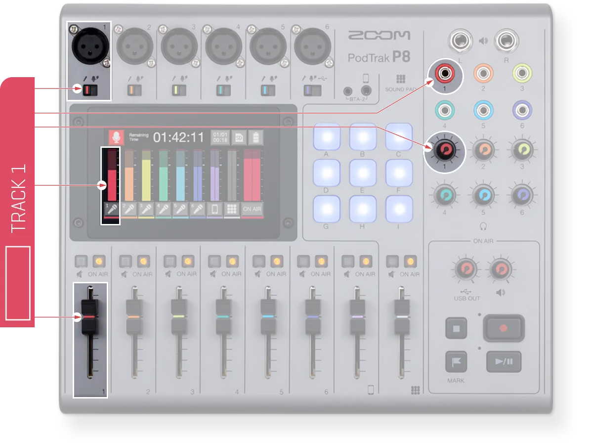 The PodTrak P8 features six fantastic-sounding Zoom microphone inputs to give you and your guests perfect sound quality.