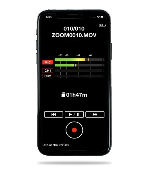 With the Q8n Control app (for iOS/Android), you can monitor the signal remotely and start or stop recording. (*Bluetooth adapter BTA-1 is required.)