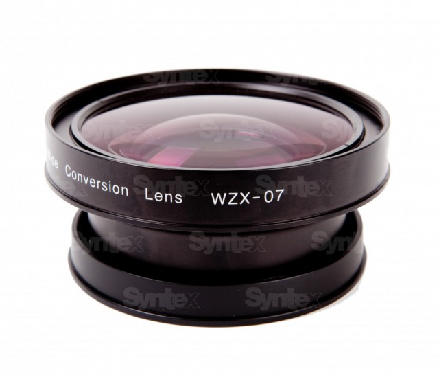 The Zunow WZX-07 professional optic easily attaches to the 72mm thread on the front of the camcorder lens with a range of 3.9-78mm and provides 30% more wide-angle coverage. Once installed, the WZX-07 optic adjusts the original 3.9-78mm camcorder lens to a wider focal length of 2.73-54.6mm. When using a 35mm SLR equivalent, the original 37.4-748mm lens is widened to 26-523mm. The lens retains full zoom without loss of luminosity or vignetting.